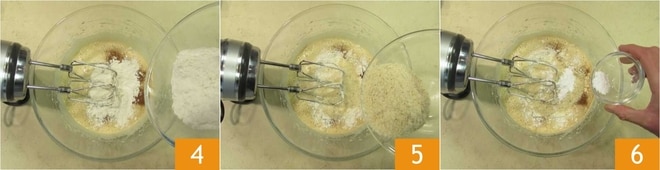 a farinha 00 4, a farinha de amêndoas 5 e o fermento 6.