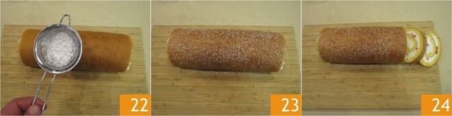 Polvilhe com açúcar de confeiteiro 22, se necessário, apare-o 23, depois corte em fatias e sirva 24!