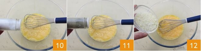 e adicione o sal 10, a pimenta 11 e o queijo ralado 12.
