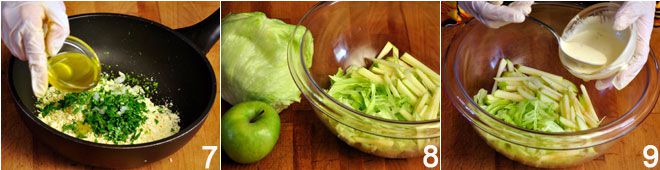 Nesta receita, as rustichelle serão acompanhadas por uma salada cremosa de maçãs verdes.
