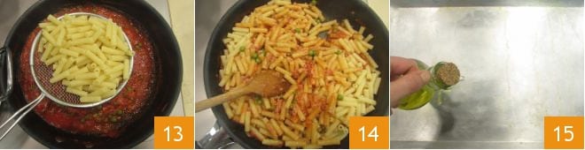 Cozinhe a massa pelo tempo indicado na embalagem e escorra direto na panela onde você cozinhou o molho 13. Misture bem 14; despeje óleo no fundo de uma assadeira de bordas baixas com medidas 38x25 cm 15,