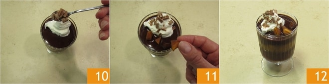 Decore com raspas de chocolate 10, pedaços de damascos desidratados 11 e sirva seus copinhos 12.