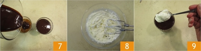 Despeje o resto da ganache dentro dos copinhos e transfira novamente para a geladeira por mais cerca de 15 minutos. Enquanto isso, bata o creme de leite deixando-o bem macio, ele deve ser semibatido 8. Transfira para os copinhos 9.