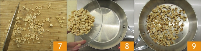 Enquanto isso, pique grosseiramente as avelãs 7 e torre-as em uma frigideira em fogo médio por alguns minutos 8, depois reserve 9.