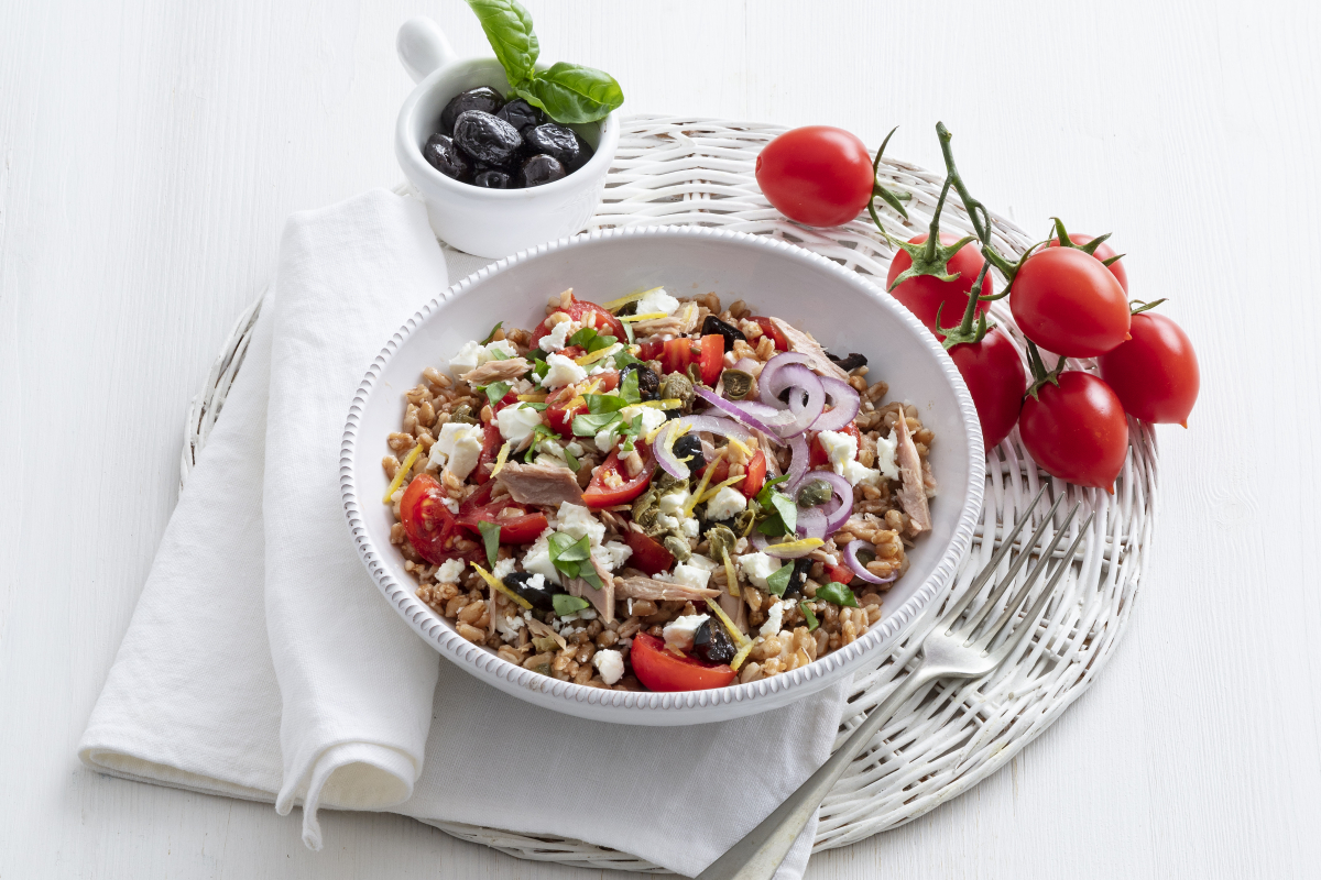 Experimente também a versão com atum fresco, fácil e saborosa, nossa Salada de espelta com legumes ou nossa aromática Salada de farro com pesto de ervas e queijo primosale!