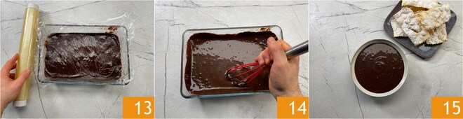 Cubra com filme plástico 13 e coloque na geladeira para resfriar por 2 horas. Antes de servir, misture energicamente com um batedor 14. Seu sanguinaccio doce está pronto para ser degustado 15!