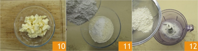 Mantenha a manteiga na geladeira para que fique bem fria 10. Em uma tigela, misture a farinha, o fermento e o açúcar de confeiteiro 11. Peneire os ingredientes secos no processador 12.