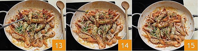 Antes de servir os lagostins à busara, retire a pimenta e o dente de alho (13-14): seus lagostins à busara estão prontos 15!