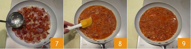 Adicione o restante da água quente 7 e misture com uma espátula de cozinha 8 para que a nduja se dissolva 9.