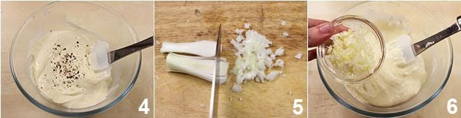 Transfira o creme para uma tigela e adicione pimenta a gosto 4. Se desejar, pique finamente uma cebolinha 5 e adicione ao creme 6.