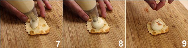 Coloque o creme obatzda em um saco de confeitar e coloque um pouco sobre cada folhado clássico (7-8). Finalize com uma pitada de páprica doce em cada um 9 e seus folhados com creme obatzda e páprica estão prontos para serem saboreados!