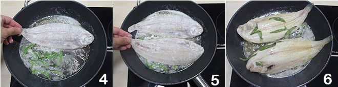 então coloque os linguados (4-5) e deixe-os dourar por 3-4 minutos de cada lado, tomando cuidado para não quebrá-los ao virá-los na frigideira (se você não tiver uma frigideira suficientemente grande para cozinhar 4 linguados ao mesmo tempo, recomendamos fazê-lo em duas etapas). Se perceber que as folhas de sálvia estão ficando muito coloridas durante o cozimento, tendendo a ficar marrons, retire-as do fogo e reserve-as: elas servirão para decorar o peixe ao final do preparo. Após o cozimento, acerte o sal e, se preferir, adicione pimenta moída, depois coloque os linguados em um prato de servir e decore-os com as folhas de sálvia e a manteiga derretida. O linguado com manteiga e sálvia está pronto 6, sirva-o e aprecie-o na hora.