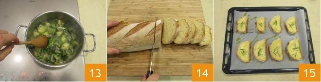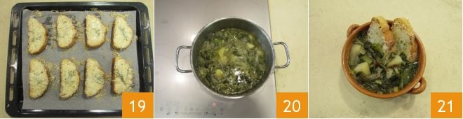 até que o queijo esteja derretido 19. Neste ponto, a sopa também estará pronta 20 e você poderá servi-la acompanhada dos croutons com queijo 21.