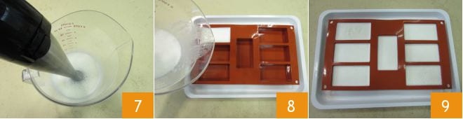 e bata tudo com um mixer de imersão 7. Transfira para uma forma de silicone 8 (ou em forminhas de gelo). Coloque no freezer e deixe congelar por pelo menos uma noite 9.