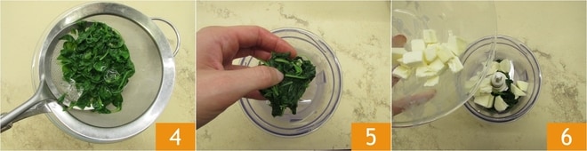Aguarde alguns segundos, então coloque as folhas de manjericão em uma peneira para eliminar o excesso de água 4. Esprema levemente e seque as folhas com papel toalha e transfira para um processador de alimentos 5. Adicione também a manteiga em temperatura ambiente 6.
