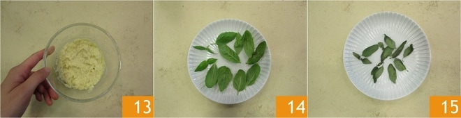 Você deve obter um creme liso 13. Lave e seque bem o manjericão. Coloque-o em um prato 14, sem sobrepor as folhas, e cozinhe no micro-ondas por cerca de 3 minutos a 700 Watts, para desidratá-las 15.