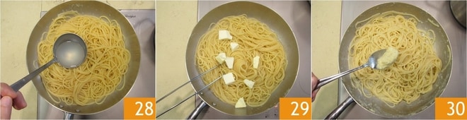 Adicione mais uma concha da água do cozimento 28 e termine o cozimento. Desligue o fogo e acrescente a manteiga fria em cubos 29. Misture e prove a massa, se desejar um toque ainda mais limonoso, adicione mais creme de limões 30.