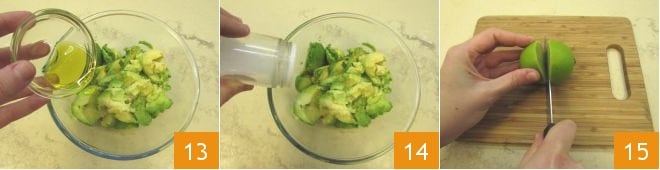 Tempere com óleo 13 e sal 14. Corte o limão ao meio 15