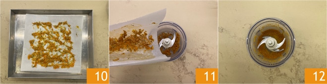 Deixe secar por cerca de 2 horas no forno estático a 70-80°C 10. Quando estiverem completamente secas, você pode triturá-las em um mixer 11 12.