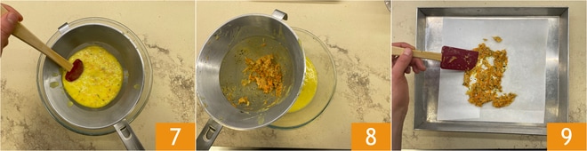 Para deixar o molho obtido mais liso, passe-o por uma peneira 7. As cascas dos tomates que sobraram não devem ser jogadas fora 8: podem ser distribuídas em uma assadeira forrada com papel manteiga 9.
