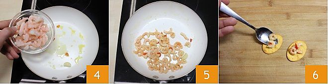 Quando o alho estiver bem dourado, adicione os camarões descascados 4 e salgue a gosto. Salteie-os na frigideira em fogo alto por alguns minutos, até que fiquem bem dourados 5. Distribua as spianatine sobre uma tábua e coloque os ingredientes sobre elas com a ajuda de uma colher. Neste ponto, suas spianatine com camarões alho óleo e pimenta estão prontas para serem servidas e saboreadas na hora!