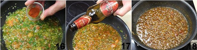 a páprica 16, sal, pimenta e por último a cerveja 17. Cozinhe por 10 minutos até que todos os ingredientes fiquem macios 18.