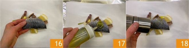 Complete com alguns ramos de tomilho limão 19. Feche o papel manteiga como um pacote 20 21.