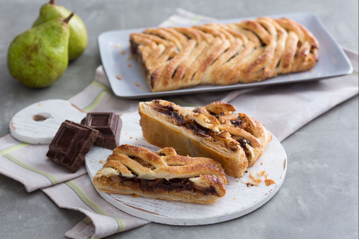 Se você está com pressa como o Bolt e não tem tempo de fazer a base clássica do Strudel de Maçã, aqui vai uma ideia. Um strudel de pêras e chocolate, super rápido: uma variação bem docinha do tradicional de maçã que aposta na combinação mais do que comprovada e gostosa de Torta de pera e chocolate. A adição de especiarias como canela e gengibre valoriza ainda mais essa sobremesa, perfeita como final de refeição ou para um lanche. Mesmo sendo uma sobremesa muito rápida, nada é deixado ao acaso: a decoração trançada deixará seu strudel de pêras e chocolate cenográfico — uma maravilha para os olhos e o paladar.