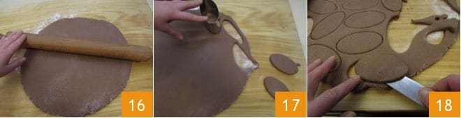 até obter uma espessura de cerca de 1 cm 16. Usando um cortador de massa oval com cerca de 9 cm, corte seus biscoitos 17 e, usando uma espátula, levante-os delicadamente 18.
