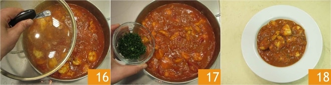 Ajuste o sal e pimenta, cubra com uma tampa 16 e deixe cozinhar por cerca de 8-10 minutos. Aromatize com salsa finamente picada 17. Sirva o tamboril em guazzetto bem quente com pão torrado 18.
