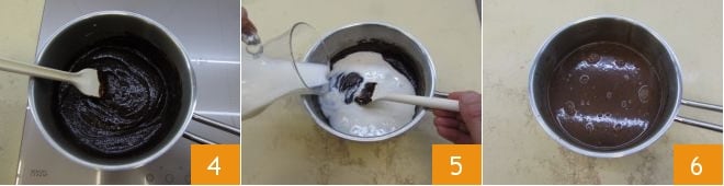 Misture para incorporar todos os ingredientes 4 e adicione o leite morno 5, misture novamente 6 e deixe esfriar à temperatura ambiente.