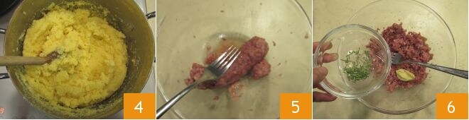 Você deve obter uma polenta bastante densa 4. Coloque em uma tigela o cotechino já cozido e amasse com um garfo 5 para obter uma espécie de ragu, depois tempere com a mostarda, o alecrim picado 6