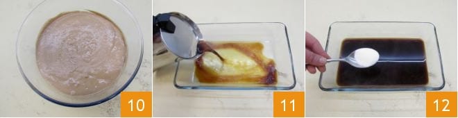 Quando o creme estiver pronto 10, coloque-o na geladeira enquanto continua a preparação. Prepare o café com a cafeteira e despeje-o em uma tigela rasa e larga 11; dissolva o açúcar dentro 12 (se preferir, pode omitir) e deixe esfriar.