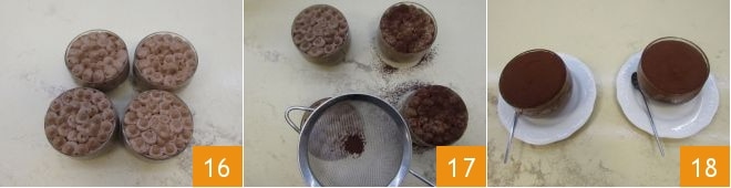 Quando estiverem prontos 16, você pode polvilhar novamente com chocolate amargo em pó 17 e servir seus tiramisù de chocolate 18!