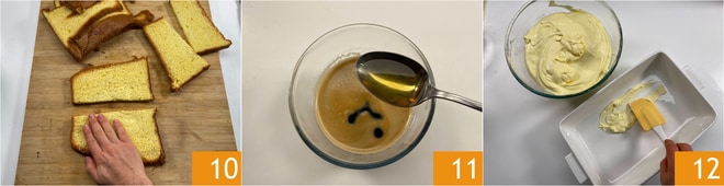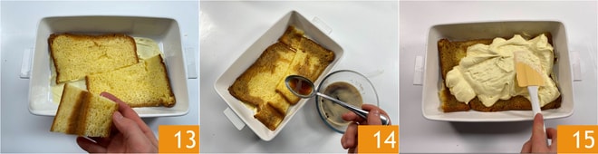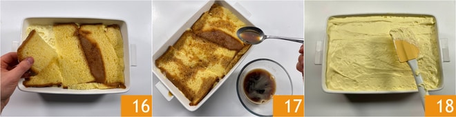 Proceda com uma segunda camada de pandoro 16, o café 17 e o creme 18.