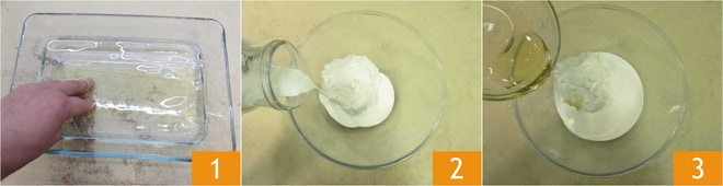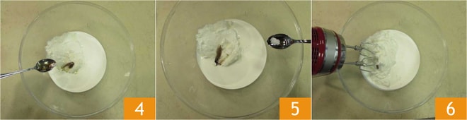 o extrato de baunilha 4 e o sal 5. Com uma batedeira, misture os ingredientes por cerca de 2 minutos 6.
