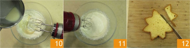 Despeje a mistura de creme e gelatina sobre o creme de iogurte 10 e bata por mais 2 minutos com a batedeira 11. Reserve o creme. Corte fatias de pandoro de 1 cm de espessura e retire as bordas 12