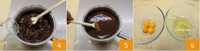 Misture com uma colher de pau e, quando estiver derretido, adicione o leite 4. Misture novamente até obter um molho espesso e sem grumos 5. Enquanto o chocolate esfria, separe as gemas das claras 6