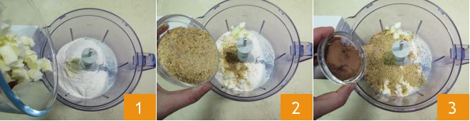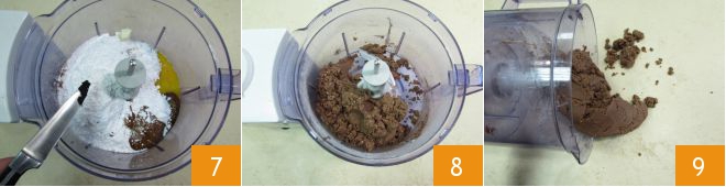 uma pitada de sal e as sementes de baunilha 7. Acione o processador até que o composto esteja bem misturado ou tenha formado uma bola 8. Transfira para a superfície de trabalho 9