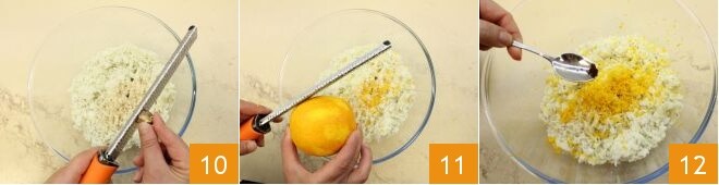 aromatize com a noz-moscada ralada 10, as raspas de laranja raladas 11, o pó de cravo-da-índia 12