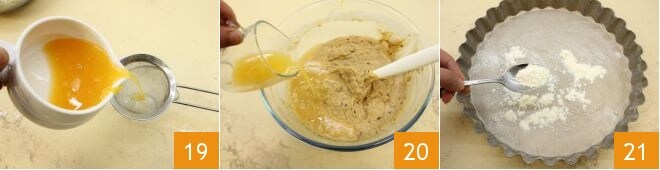 coei-o através de uma peneira para reter as sementes 19 e depois incorpore também o suco à massa 20. Unte e enfarinhe uma forma de 26 cm de diâmetro 21