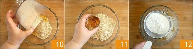 as castanhas trituradas 10, o rum 11 e a farinha peneirada 12.