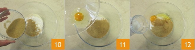 o açúcar mascavo 10, o ovo 11 e o leite de amêndoas 12.