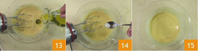 Trabalhe por alguns segundos com um batedor e adicione o óleo 13. Continue por mais alguns segundos e adicione uma pitada de sal 14. Você deve obter um creme liso 15. Cubra com filme plástico e deixe descansar na geladeira.