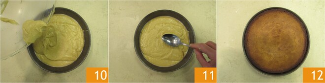Transfira a massa para uma forma levemente cônica de 22 cm de diâmetro, previamente untada e enfarinhada 10. Nivele a superfície com as costas da colher 11. Asse em forno estático a 170° por cerca de 55 minutos. Antes de desenformar, faça sempre o teste do palito (os tempos de cozimento são sempre variáveis), uma vez pronto 12 espere que esfrie um pouco antes de desenformar.