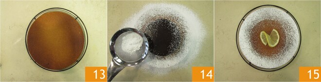 Desenforme e deixe esfriar completamente sobre uma grade 13. Para decorar com açúcar de confeiteiro, você pode colocar um pratinho pequeno sobre o centro do bolo e espalhar o açúcar ao redor 14, para que caia apenas na parte externa. Decore depois com uma fatia de limão e sirva seu bolo de limão sem ovos 15!