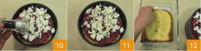 o azeite, o alecrim e a pimenta (10-11). Termine com a última camada: molhe mais duas fatias de panetone no leite 12