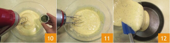 Por último, adicione o alecrim picado 10 e mexa para incorporá-lo de forma homogênea 11. Unte uma forma de 22 cm de diâmetro e despeje dentro a mistura obtida 12, depois asse em forno estático pré-aquecido a 175°C por cerca de 40 minutos.