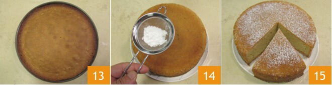 Após o tempo de cozimento (sempre verifique com um palito), retire o bolo do forno e deixe esfriar um pouco na forma 13. Depois de frio, vire-o em um prato de servir e polvilhe a superfície com açúcar de confeiteiro 14. Seu bolo de rum e alecrim está pronto para ser saboreado 15!