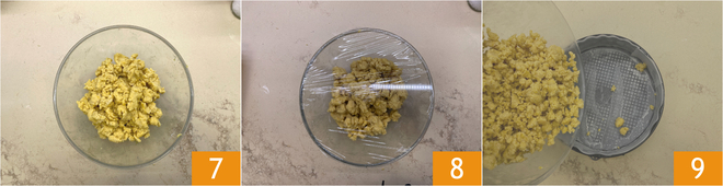Continue a esfarelar a mistura para formar migalhas grosseiras 7, cubra com filme plástico e leve à geladeira por 1 hora 8. Forre com papel manteiga uma forma de 22 cm de diâmetro, despeje 2/3 da massa 9.